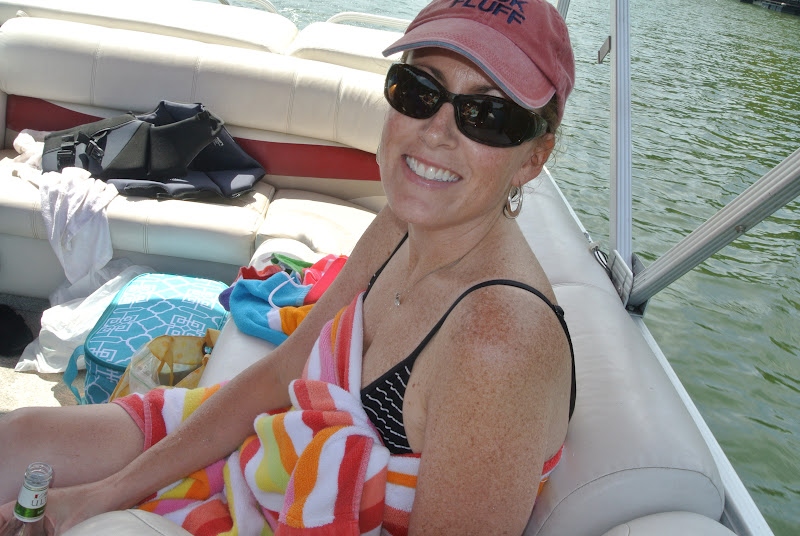 This weekend we had a much needed girls weekend at the lake. What a fun filled time full of laughter! Saturday we went out all day on the lake. Yall you will not believe this. We were all lounging in the water talking when all of a sudden Jenny started freaking out. Earlier that day we had talked about gators and all the crazy stuff we saw on shark week :) We all started laughing because we thought maybe a fish brushed up against her foot in the water. NO!!! Yall there was a snake that swam right up to her and was practically on her shoulder. Everyone started freaking out but laughing at the same time. We all pulled our legs up in our raft while we looked around for it. It was a little green snake that I think was totally confuses as to how he got in the middle of the lake in the first place. A few minutes later after everyone had calmed down Britney screamed, "There it is!" It was back! We ended up getting in the boat and moving to another cove.